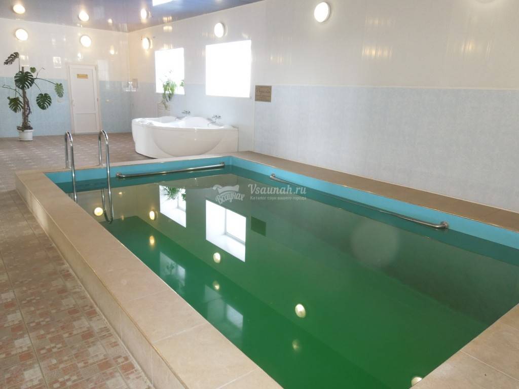 Парилка никакая! Холодно и в ней и в бассейне и в душе.Снимали в жару. Я представляю как там холодно зимой.Везде черная плесень-этим очень опасно дышать!Бассейн грязный и мутный,ледяной